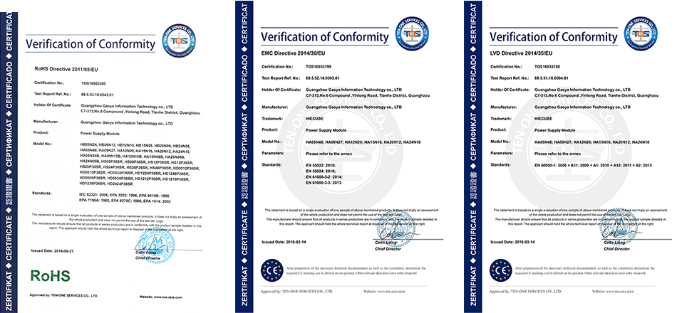 高能立方AC-DC模塊電源產(chǎn)品,已獲得了CQC、CE、ROHS等國際認證。更多有關(guān)產(chǎn)品技術(shù)、認證問題,可咨詢我們。