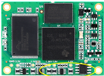 以M3352工業(yè)級(jí)核心板(Cortex-A8內(nèi)核)為例進(jìn)行測(cè)試(該核心板通過(guò)了電磁兼容工業(yè)4級(jí)試驗(yàn),包括靜電、浪涌、脈沖群、傳導(dǎo)騷擾等),在上電狀態(tài)下,工程師手指觸摸圖4所示黃色圈注位置,可誘發(fā)系統(tǒng)重啟現(xiàn)象。這是什么原因呢?